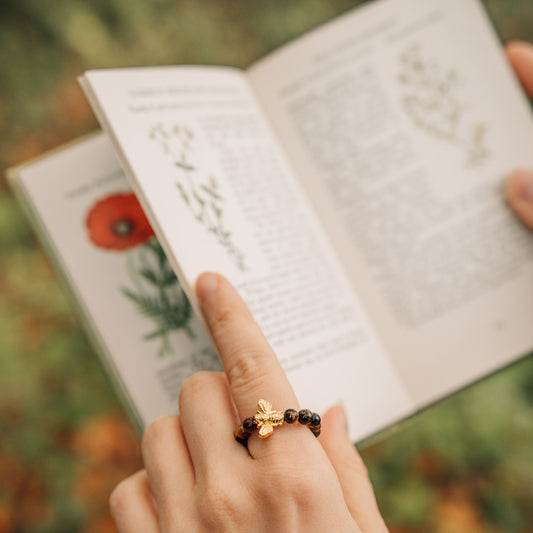AusverkauftEdelsteinring - Tigerauge mit Biene