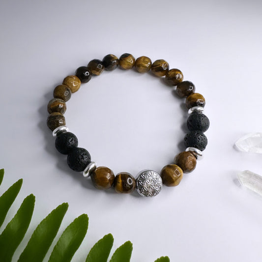NOVEMBER - Tigerauge & Lavastein - Armband Flower Of Life