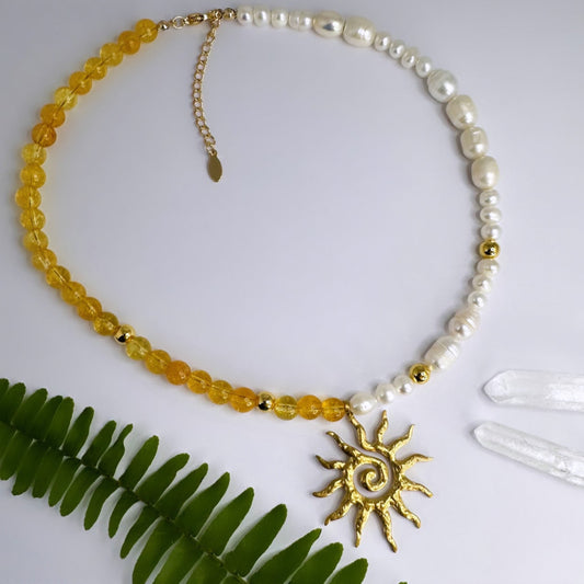 NOVEMBER - Citrin & Süsswasserperlen - Halskette Soleil