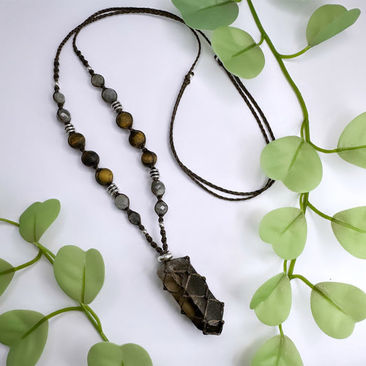 Halskette Rauchquarz - Tigerauge & Labradorit - Silber