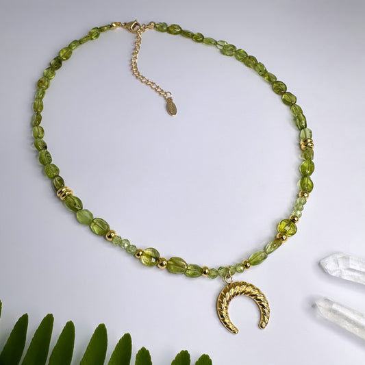 AusverkauftAUGUST - Peridot - Halskette Halbmond