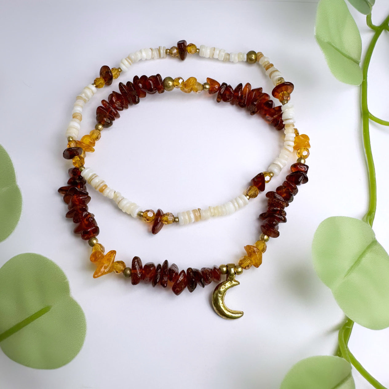Fusskettchen Set Messing - Bernstein & Muscheln