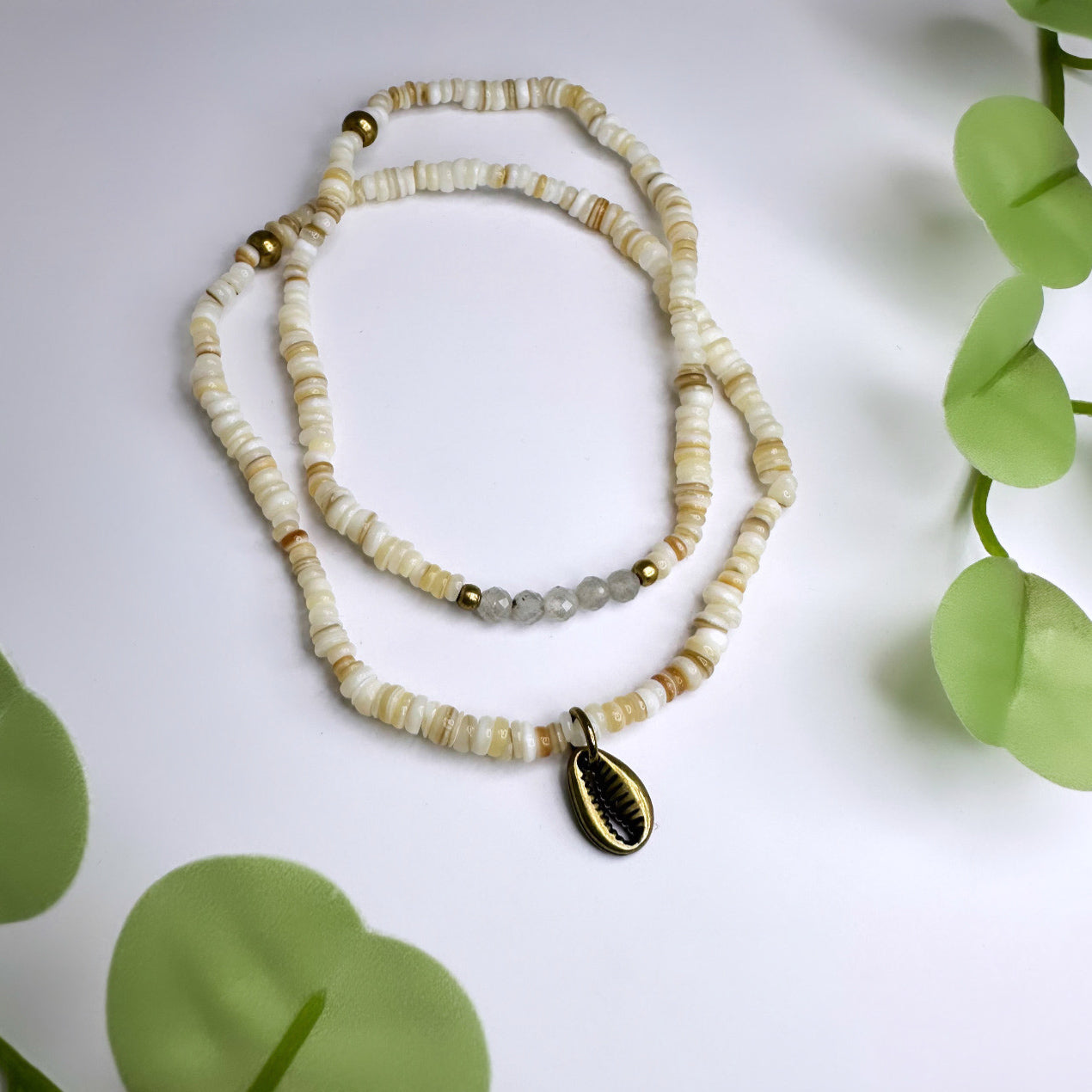 Fusskettchen Set Messing - Labradorit & Muscheln