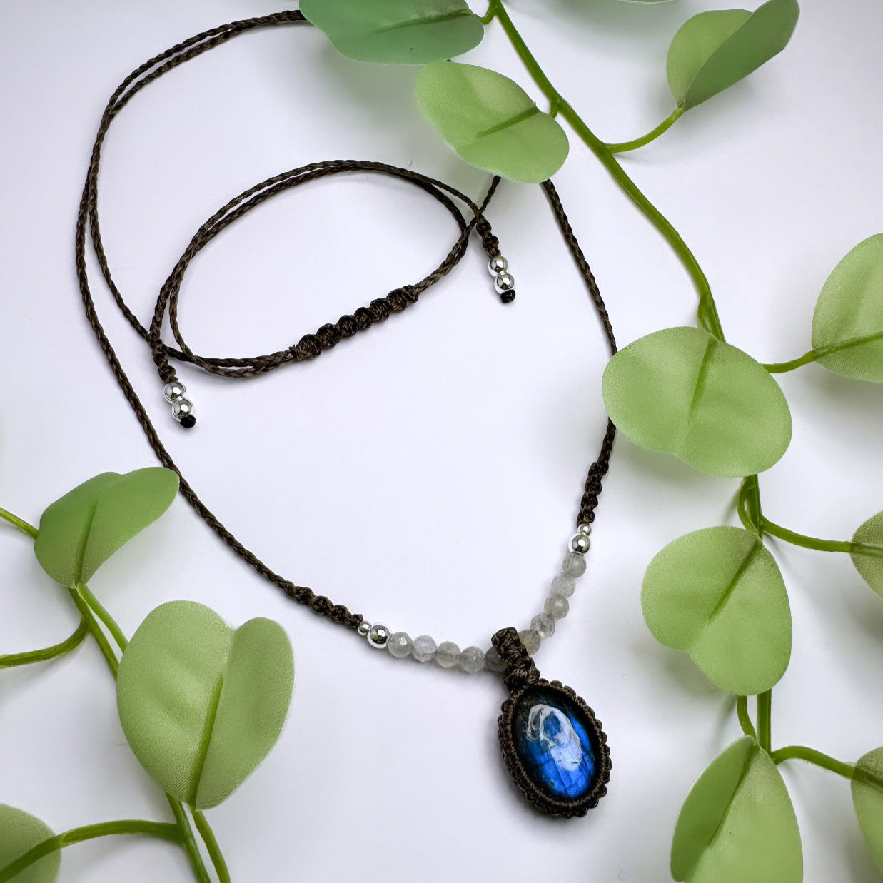 Halskette Labradorit geknüpft