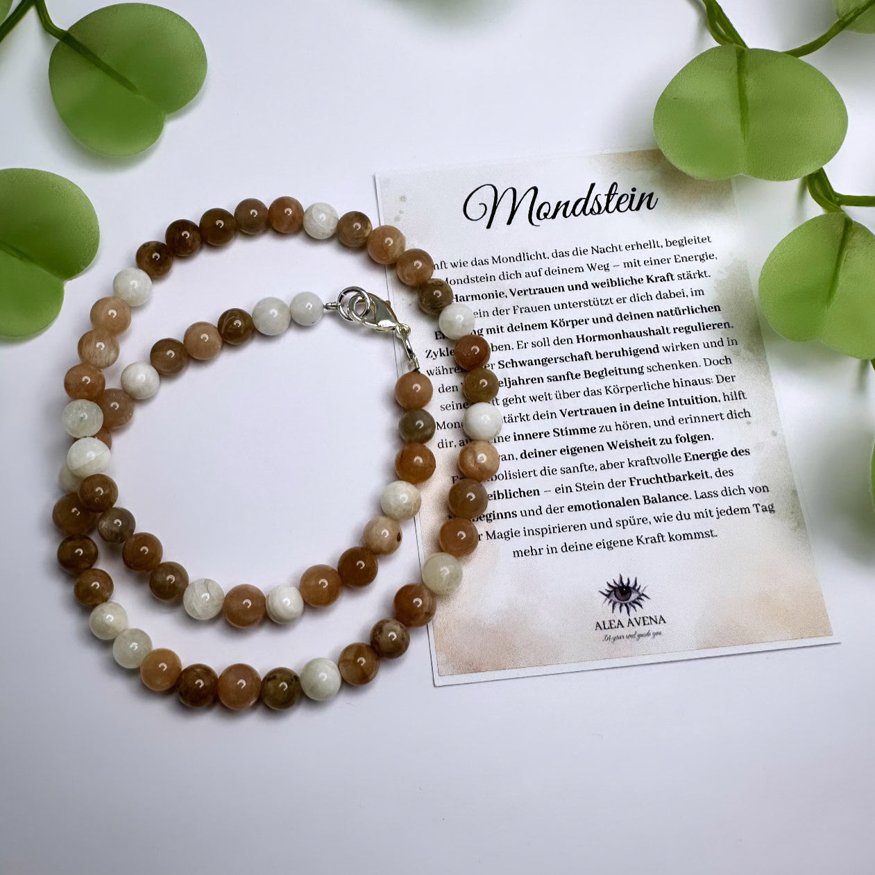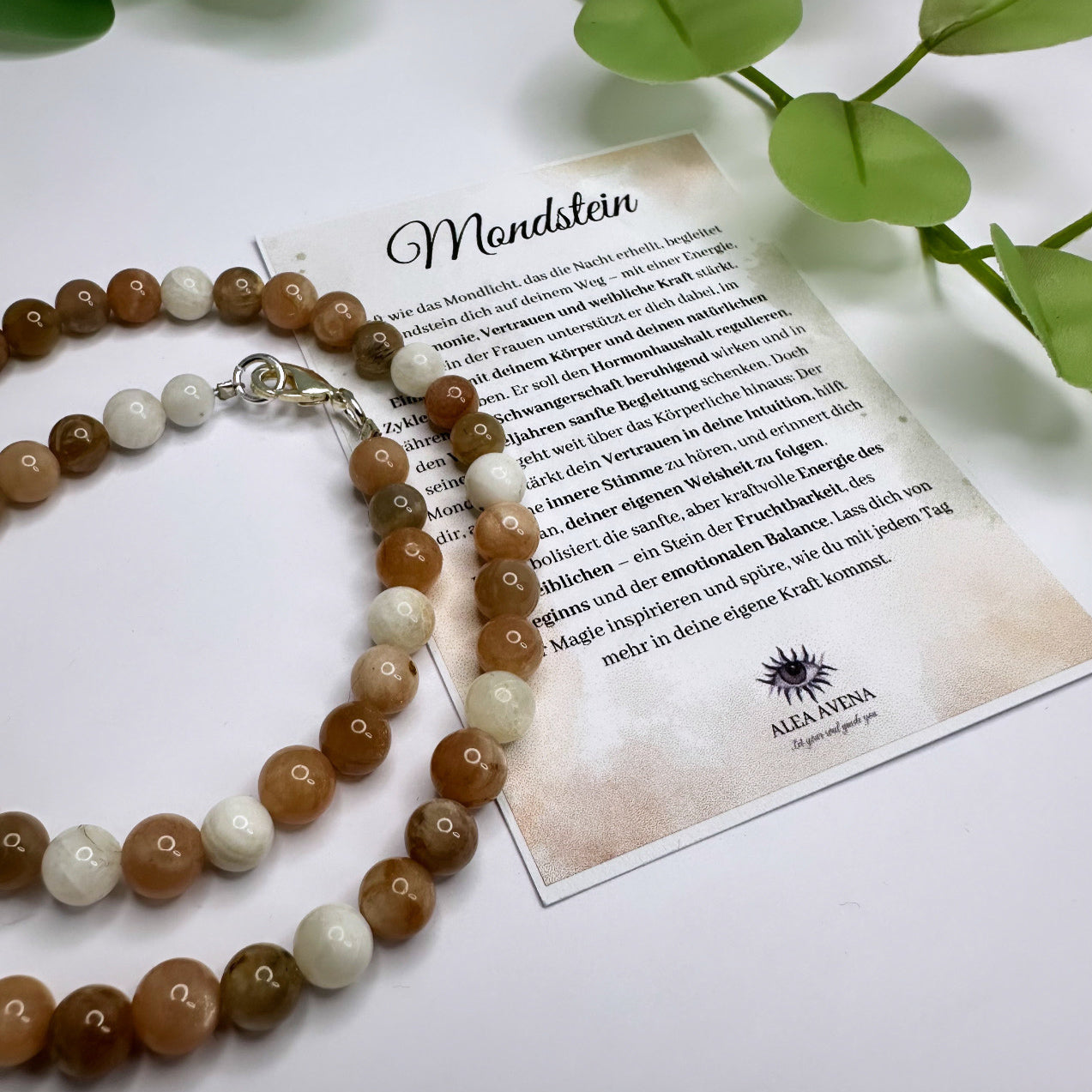 Sanft wie das Mondlicht, das die Nacht erhellt, begleitet der Mondstein dich auf deinem Weg – mit einer Energie, die Harmonie, Vertrauen und weibliche Kraft stärkt.