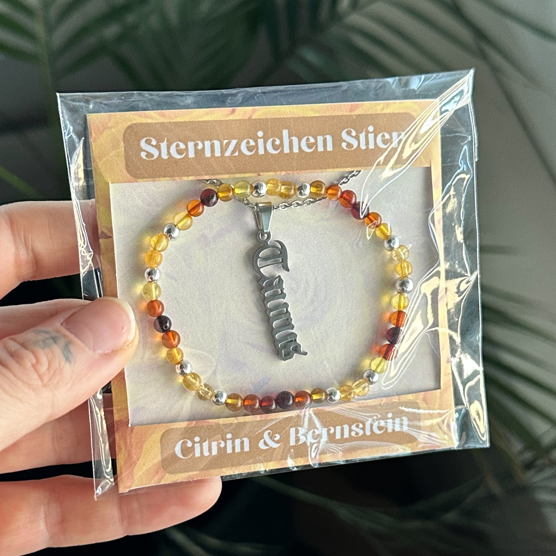 Sternzeichen Set - Stier - Citrin & Bernstein Silber